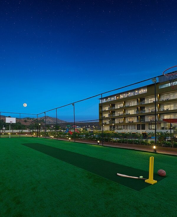 - Professional Sports Turf: Boasts an 800 sq. m. multipurpose turf suitable for cricket, football, and basketball against a scenic mountain backdrop.