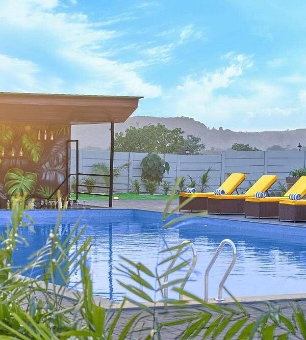 A luxury 3-star nature resort overlooking the serene Bhavali Dam, featuring mountain-view rooms, a spacious outdoor pool, and a professional sports turf.