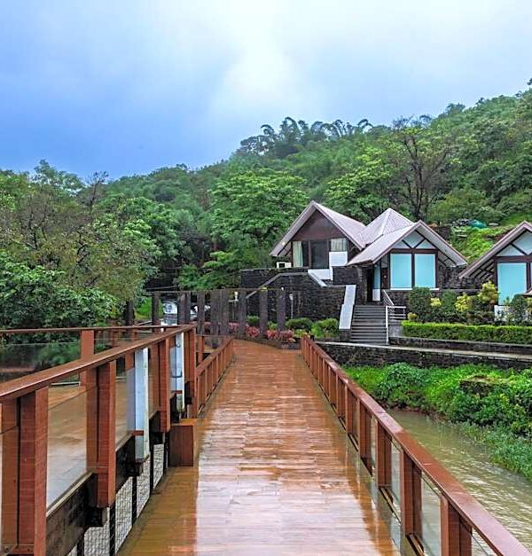 A luxury boutique sanctuary in Aamby Valley City featuring lakeside cottages, private jacuzzis, and breathtaking vistas of the Sahyadri mountains and valley.