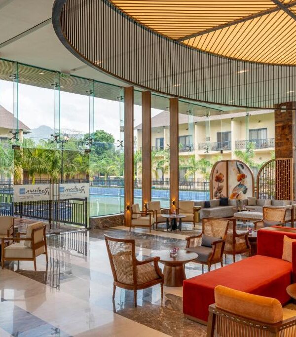 Radisson Blu Plaza Resort & Convention Centre Karjat is an upscale destination where “East-meets-West” architecture creates a stunning visual experience. Located along the banks of the Ulhas River, the resort features 128 (often expanding to 200+) elegantly appointed rooms and suites. Whether you are visiting for a high-powered corporate conference, a royal destination wedding, or a tranquil family staycation, the resort offers a perfect blend of high-end aesthetics and natural serenity.