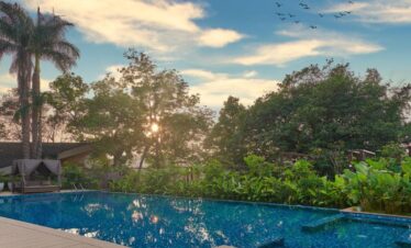 A sprawling 12-acre luxury tropical sanctuary in Alibaug, featuring a grand outdoor pool, a world-class wellness spa, and elegant villas nestled against the scenic backdrop of the Kihim coast.